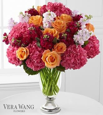 Choose the best Flower Delivery Downtown Chicago IL has to offer, Flowers by Diamond’s Treasures. This luxury mixed rose bouquet is blossoming with the color and grace that can only be supplied through the soft beauty of roses, hydrangea, and fragrant stock. This bountiful flower bouquet will amaze your special recipient. Brilliant orange roses display their swirling petals amongst clouds of pink hydrangea and pale pink and hot pink stock stems to create a fantastic look. Presented in a clear glass, this stunning flower arrangement is a wonderful way to send your sweetest wishes for any of life’s momentous occasions. VASE WILL BE DIFFERENT THAN PICTURED