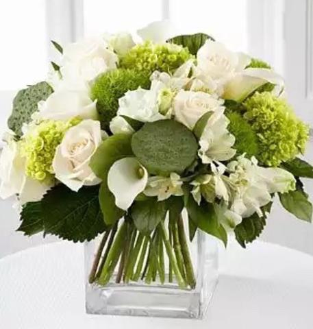 This beautiful lavish bouquet of many different green and white fresh cut flowers is true show of the beauty. Let your friend or loved one know that you wish them good luck and success under new venture.